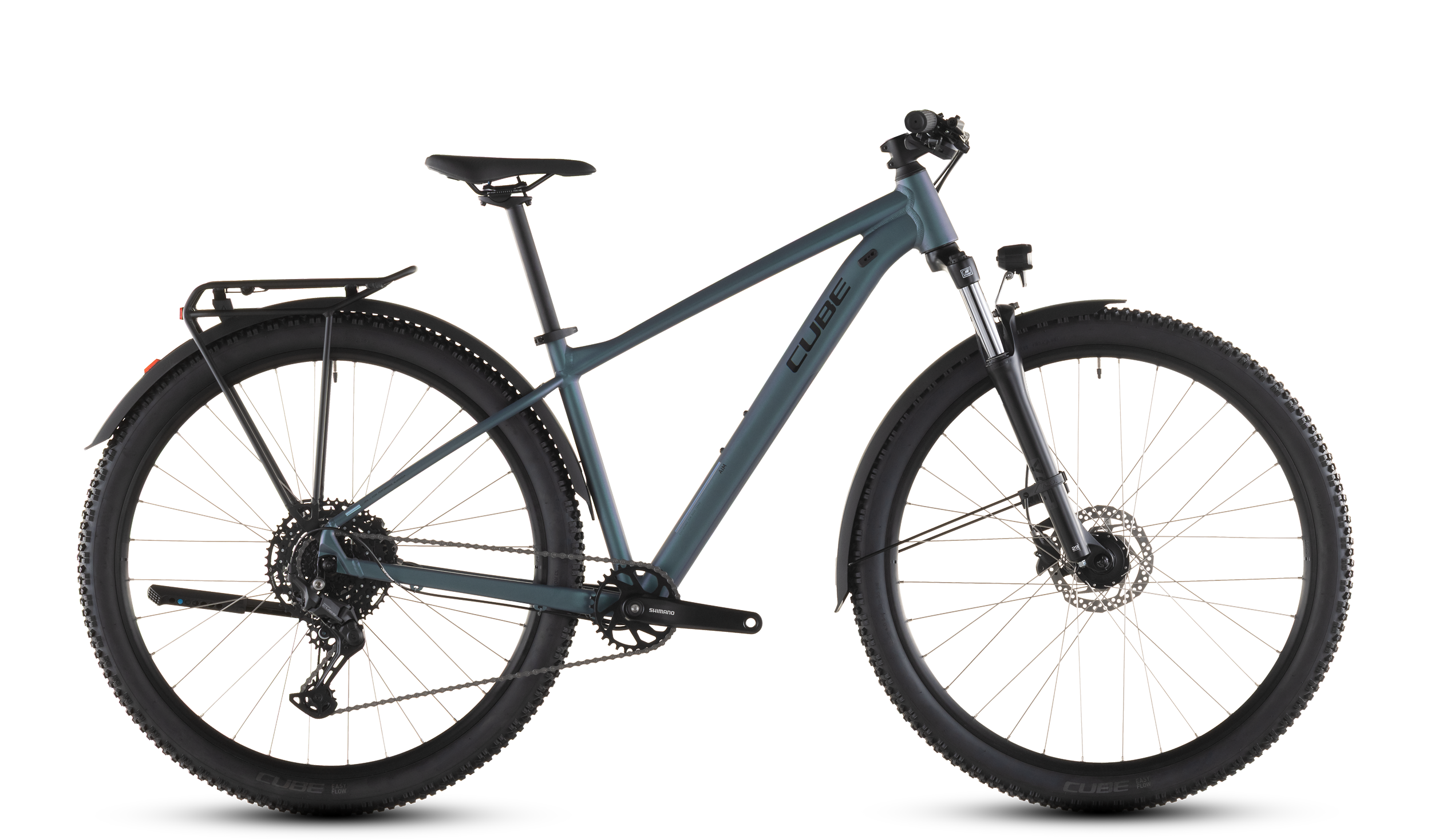Ein Mountainbike kommt überall hin – so unser Leitsatz bei der Entwicklung des Aim Pro FE, das wir mit allen nur erdenklichen Anpassungsoptionen versehen haben. Schutzbleche, Beleuchtung, Gepäckträger und Seitenständer bieten auf dem täglichen Weg ins Büro ebenso top Support wie bei Erledigungen und Einkäufen in der City. Dank 100 mm Federgabel, hydraulischen Shimano Scheibenbremsen und Shimano Cues 10-Gang Schaltung zeigt sich das Bike aber auch im Offroad-Einsatz am Wochenende souverän und zuverlässig. Dazu kommen griffige, komfortable 2.25 Zoll Reifen. Kurz: ein Allrounder, wie er im Buche steht!