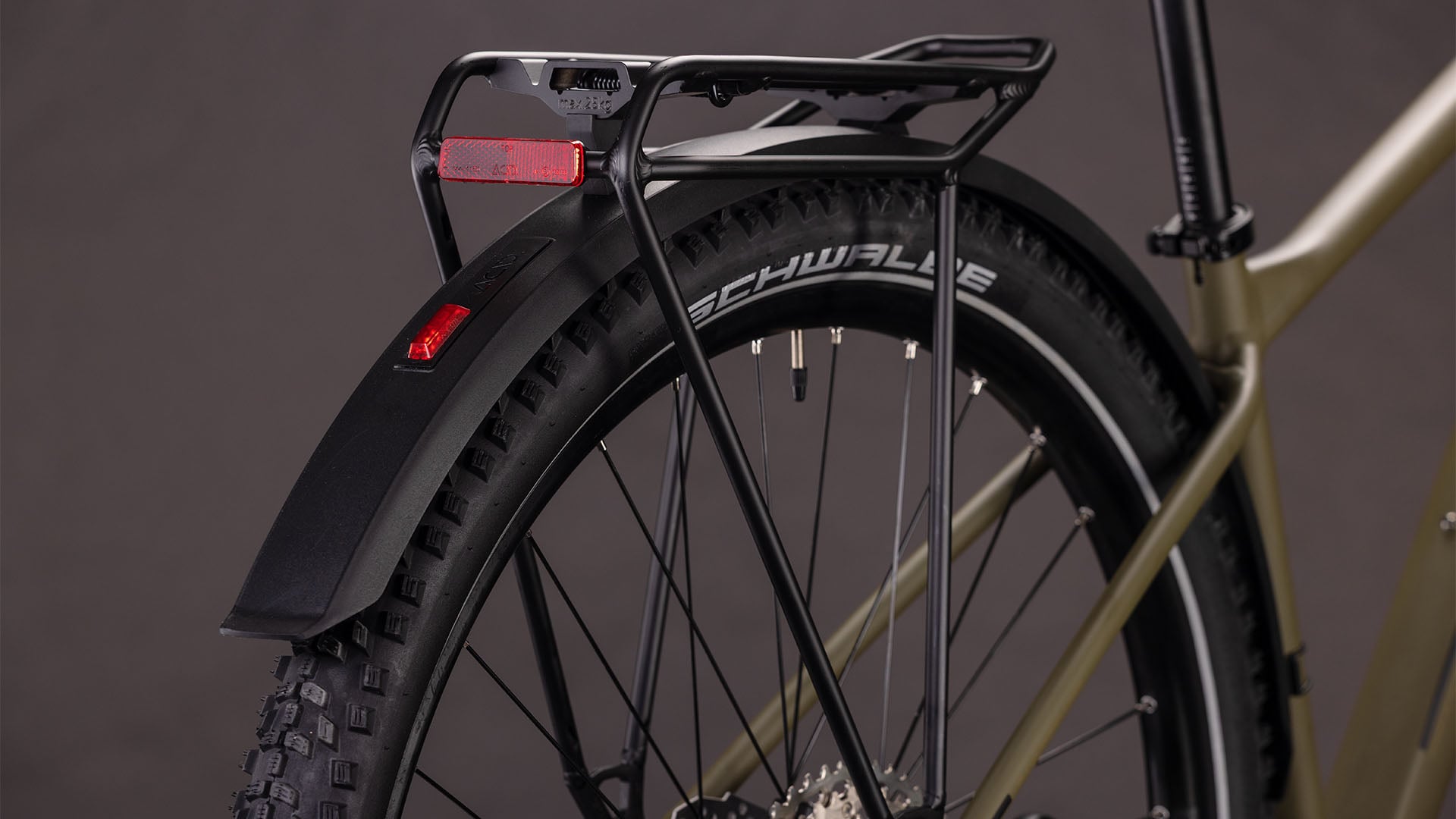 Ein Bike für absolut alles – gibt’s das? Natürlich gibt’s das und unser Aim SLX FE ist der beste Beweis. Dank integrierten Schutzblechen, Lichtern, Seitenständer und einem vielseitigen Gepäckträger ist es optimal gerüstet für den Einsatz in der City, ob zum Pendeln ins Office oder für Besorgungen aller Art. Wenn’s über Land und Schotterwege geht, liefern die 100 mm Federgabel, die 12-fach Deore Schaltung und hydraulischen Scheibenbremsen von Shimano sowie griffige Schwalbe 2.25 Zoll Reifen erstklassigen Support. Nicht zu vergessen unser Size Split System – so finden alle das für sich perfekt proportionierte Aim SLX FE. Man kann eben doch alles haben …