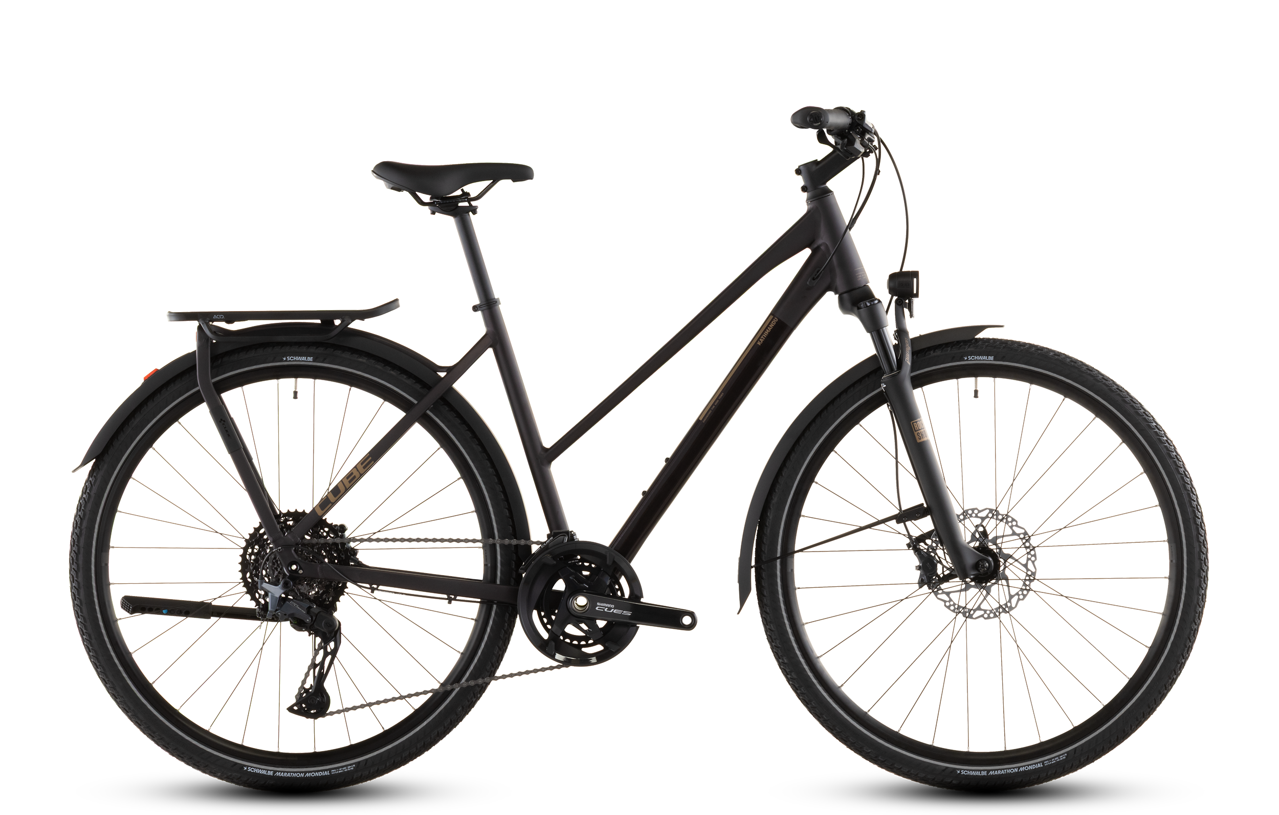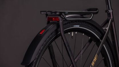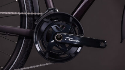 Wie geht’s wohl mit am effizientesten von A nach B? Richtig, mit dem Fahrrad, vor allem, wenn es das Kathmandu SLX von CUBE ist. Wir haben diesem kraftvollen Tourer pfeilschnell dahinrollende Marathon Mondial Reifen von Schwalbe und eine leichtgängige, zuverlässige Shimano Cues 2×11-Gang Schaltung spendiert. Kontrollierte und damit sichere Bremsmanöver gehen auf das Konto der leistungsstarken hydraulischen Cues Scheibenbremsen, ebenso von Shimano. On top gibt’s eine einfach einstellbare RockShox Paragon Gold Luftfedergabel – so wird jede noch so lange Tour zum komfortablen Hochgenuss. Für den letzten Schliff sorgen unser integrierter Gepäckträger IC 3.0, Schutzbleche aus recyceltem PET, Lichter (das Vorderlicht besteht aus nachhaltigen Materialien) und ein Seitenständer. So geht umweltbewusste Mobilität heute!