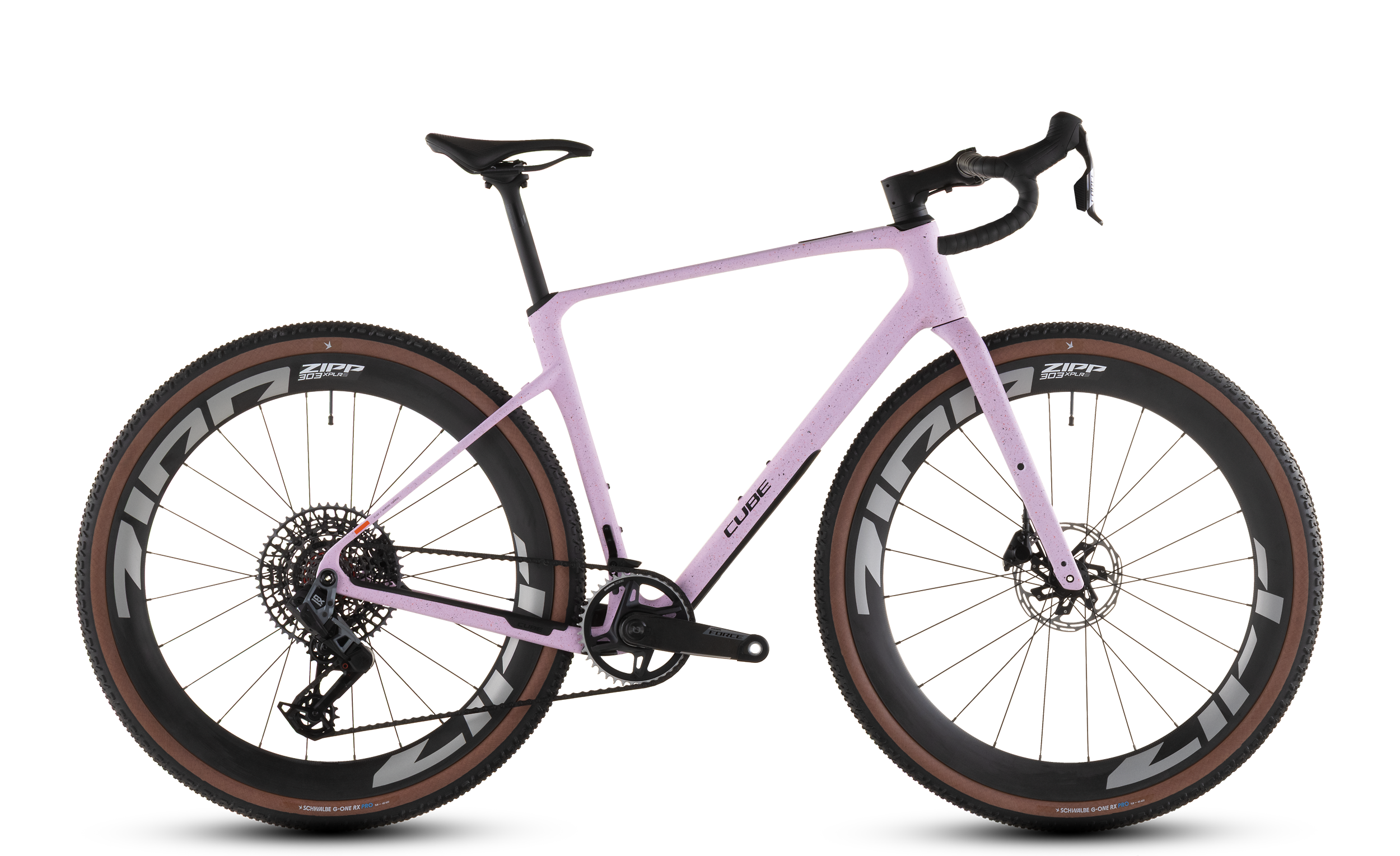 Das Nuroad C:62 SLX begeistert Gravel-Fans nicht nur mit seinem überaus detailverliebt konstruierten CUBE C:62® Carbonrahmen samt passender Gabel, sondern auch mit seinen Gravel-spezifischen Zipp 303 XPLR S Laufrädern mit hohen Felgen für den entscheidenden Vorteil in Sachen Aerodynamik und Speed beim Rennen. Auch die 45 mm G-One RX Pro Reifen von Schwalbe rollen pfeilschnell dahin – gebremst wird mit den hydraulischen Force AXS Scheibenbremsen von Sram. Ebenso aus dem Hause Sram stammt die robuste 12-fach GX Eagle Transmission, die absolut zuverlässig und sauber von Gang zu Gang schaltet. Übrigens: Am Sram Force Kurbelsatz ist ein Powermeter integriert – für den perfekten Überblick über die eigene Performance. Also nichts wie los, das Gravel-Abenteuer wartet schon!