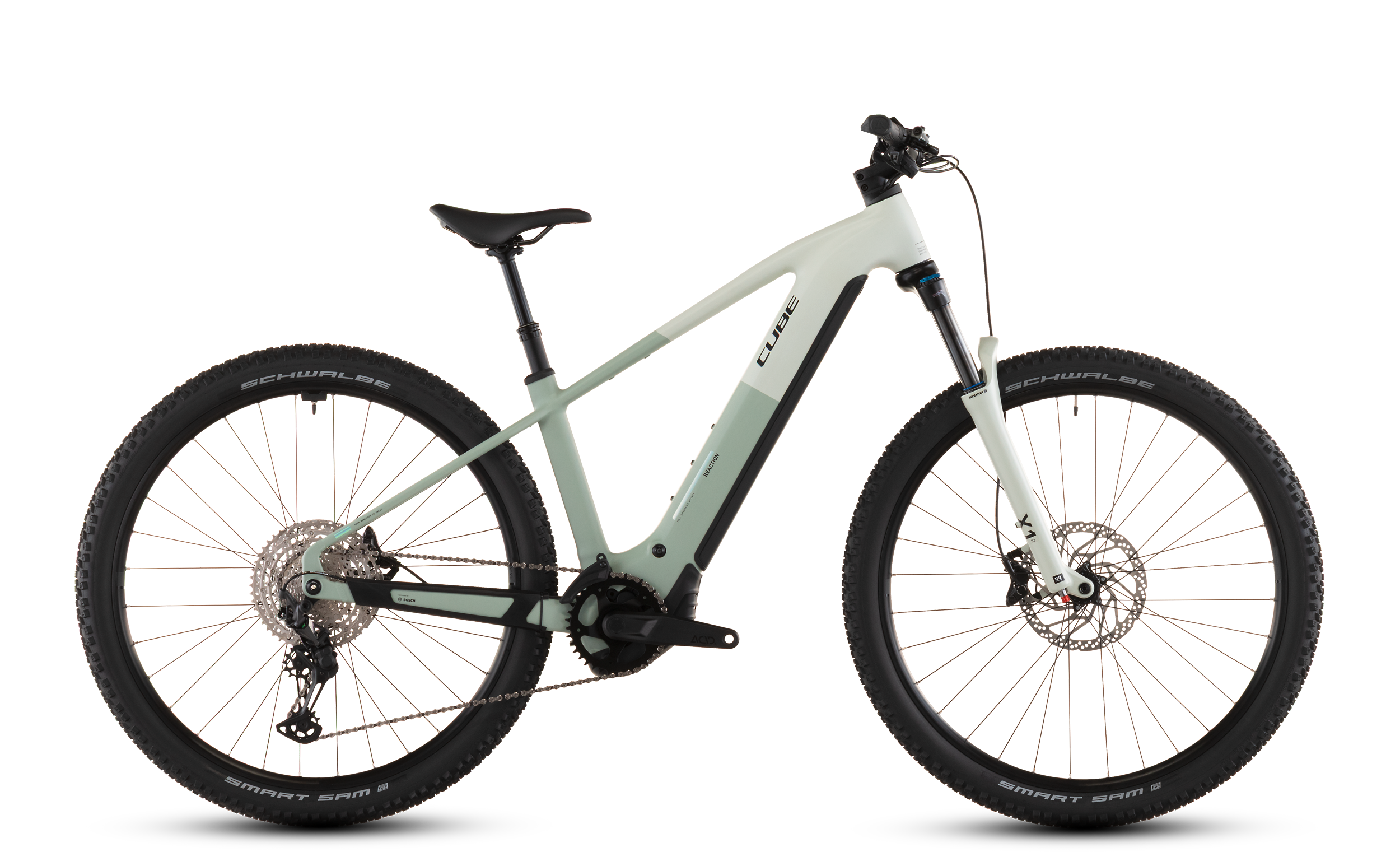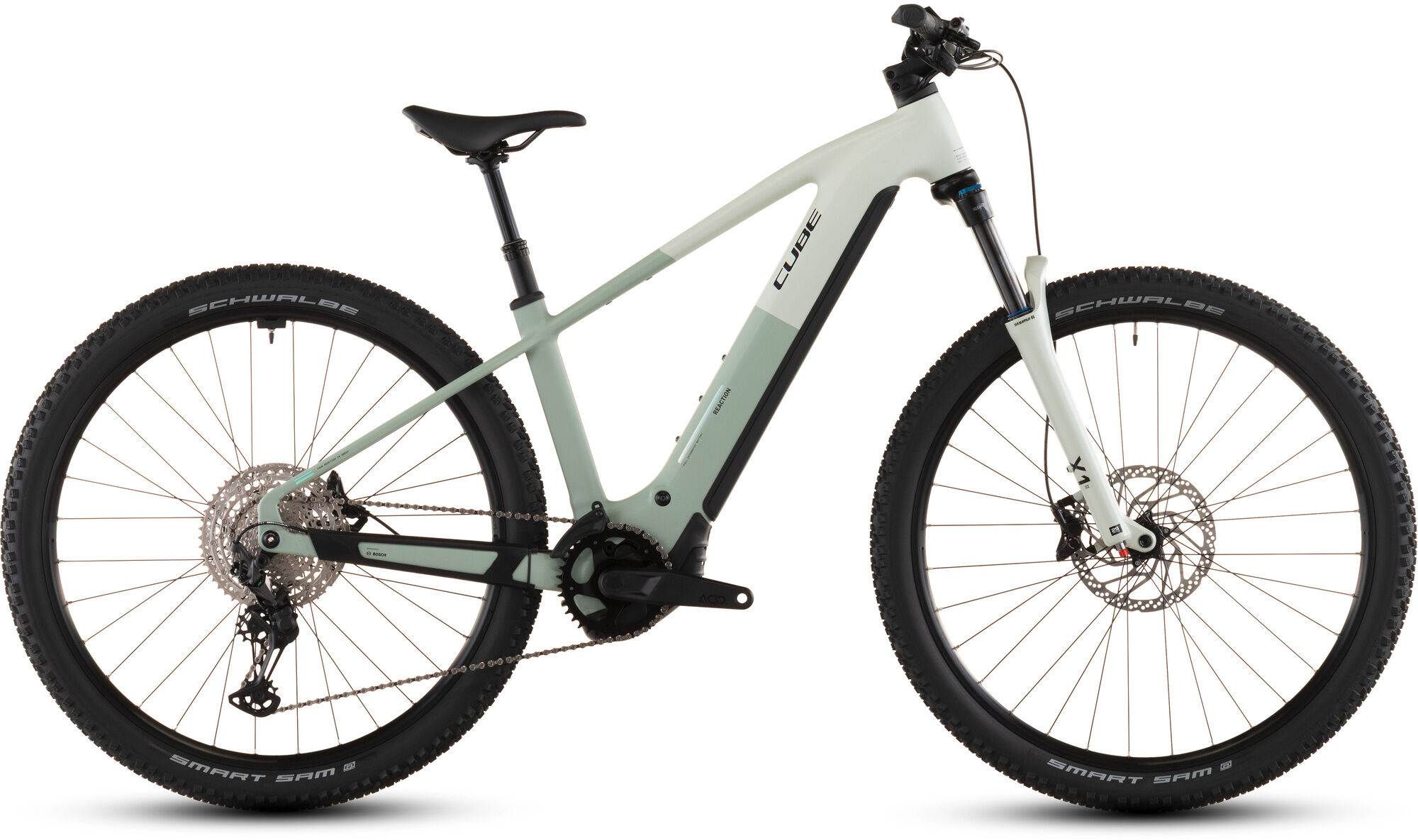Das Reaction Hybrid kombiniert die Vielseitigkeit eines Mountainbikes mit dem Support durch einen E-Motor und dem cleveren Design von CUBE: Dank seinem geschmeidig arbeitenden, leistungsstarken Bosch CX Antrieb und 800 Wh starken Akku sind jede Menge Power und Reichweite garantiert, und zwar auf jeder Route, ob über Asphalt oder im Gelände. Dabei macht die einfach bedienbare Shimano XT 12-fach Schaltung selbst steile Anstiege zum Kinderspiel. Bergab packen die hydraulischen 4-Kolben-Scheibenbremsen von Shimano kraftvoll zu und verzögern die griffigen Schwalbe 2.6 Zoll Reifen zuverlässig und sicher. Für eine Extraportion Fahrkomfort und Kontrolle auf ruppigeren Strecken haben wir eine Luftfedergabel mit 120 mm Federweg (100 mm bei kleinen Rahmengrößen und allen Tiefeinsteiger-Modellen) und eine versenkbare Sattelstütze verbaut. Fazit: Das Bike steht bereit – und jetzt kommst du!